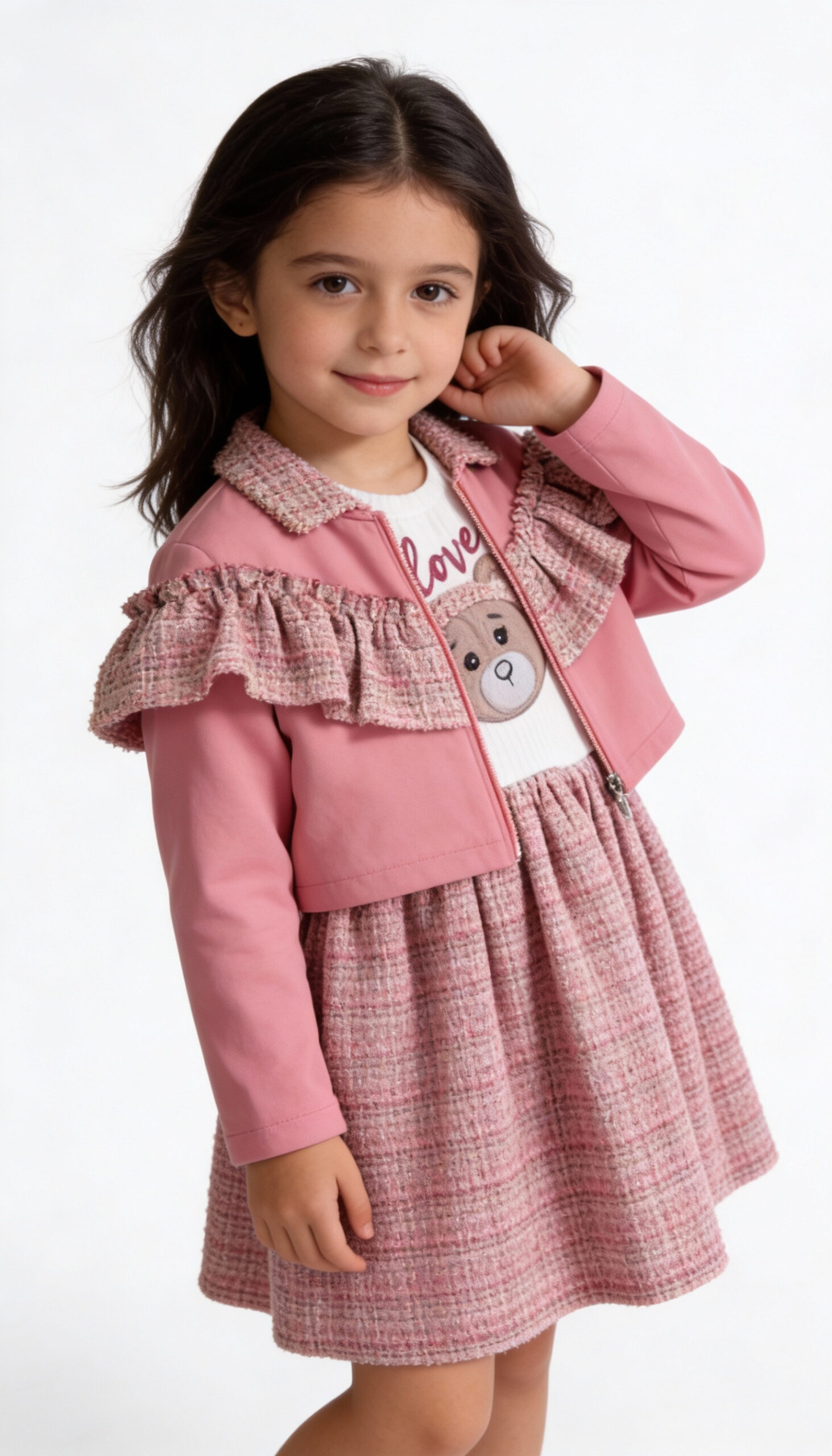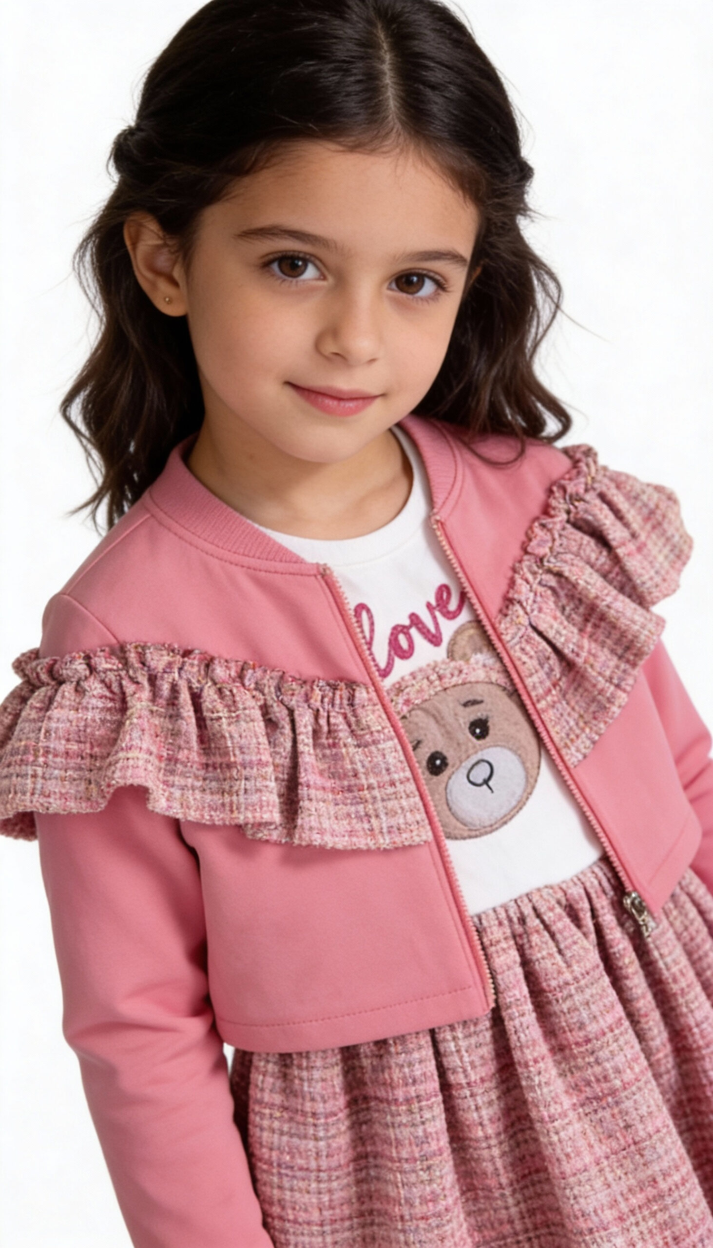 Faites plaisir à votre fille par cette belle robe avec manches et un Gilet , … votre princesse va l’adorer.
