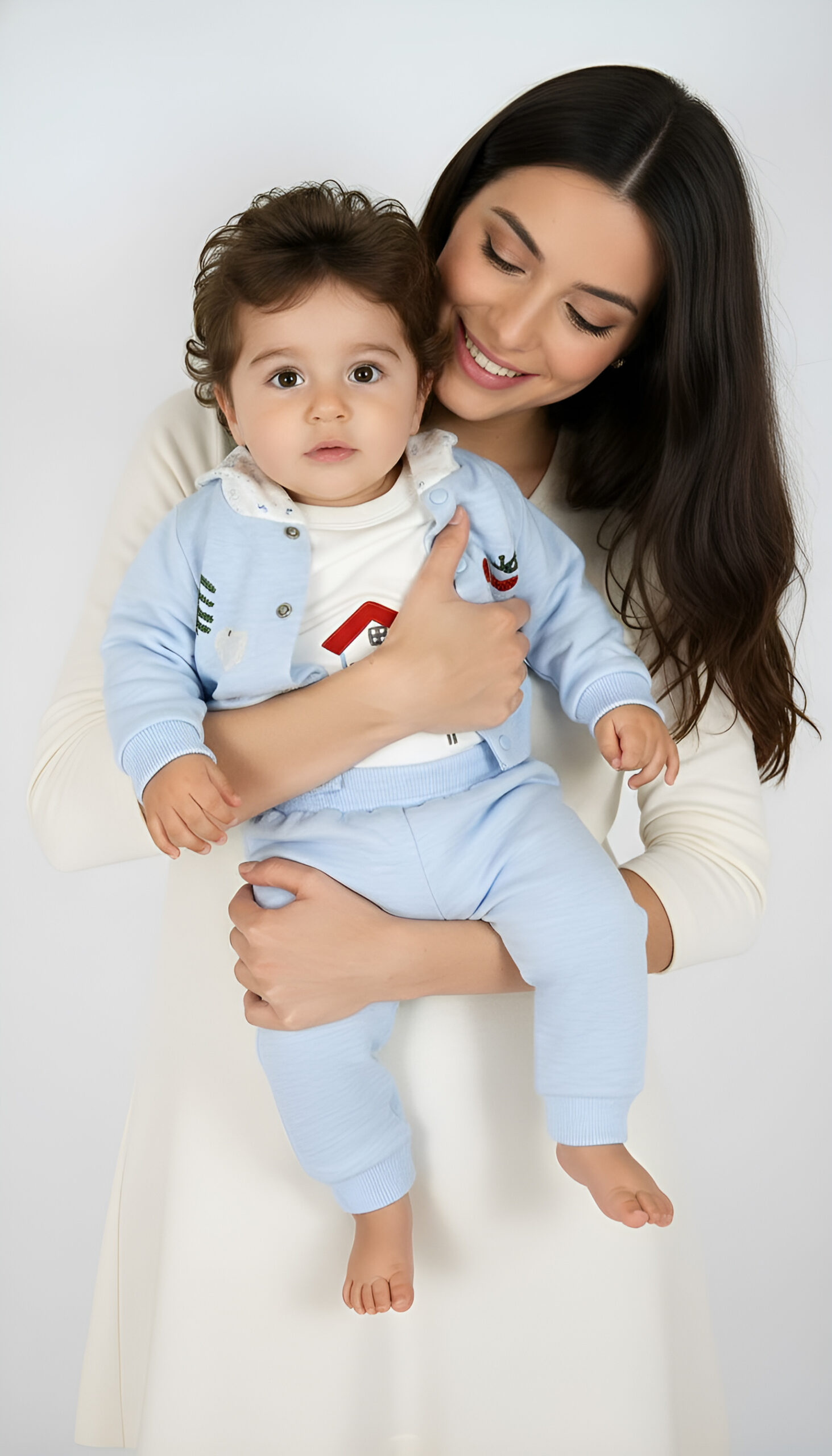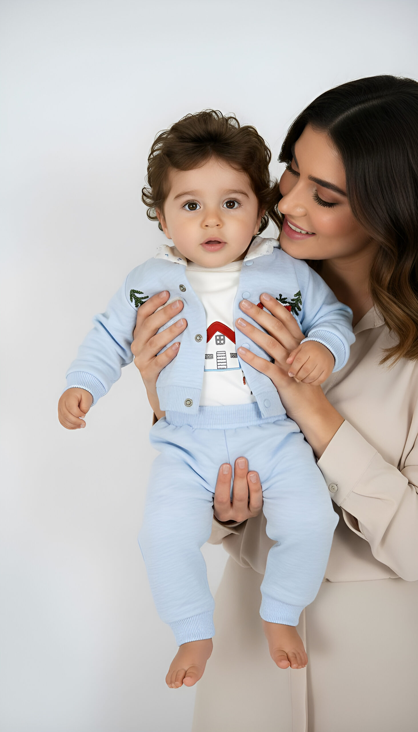 Succombez pour cet ensemble coupe décontractée aux couleurs éclatantes pour le plaisir et la beauté de votre bébé, il comporte trois pièces un gilet avec capuche, un joli body avec manche a motif d’une maisonnette et un pantalon.