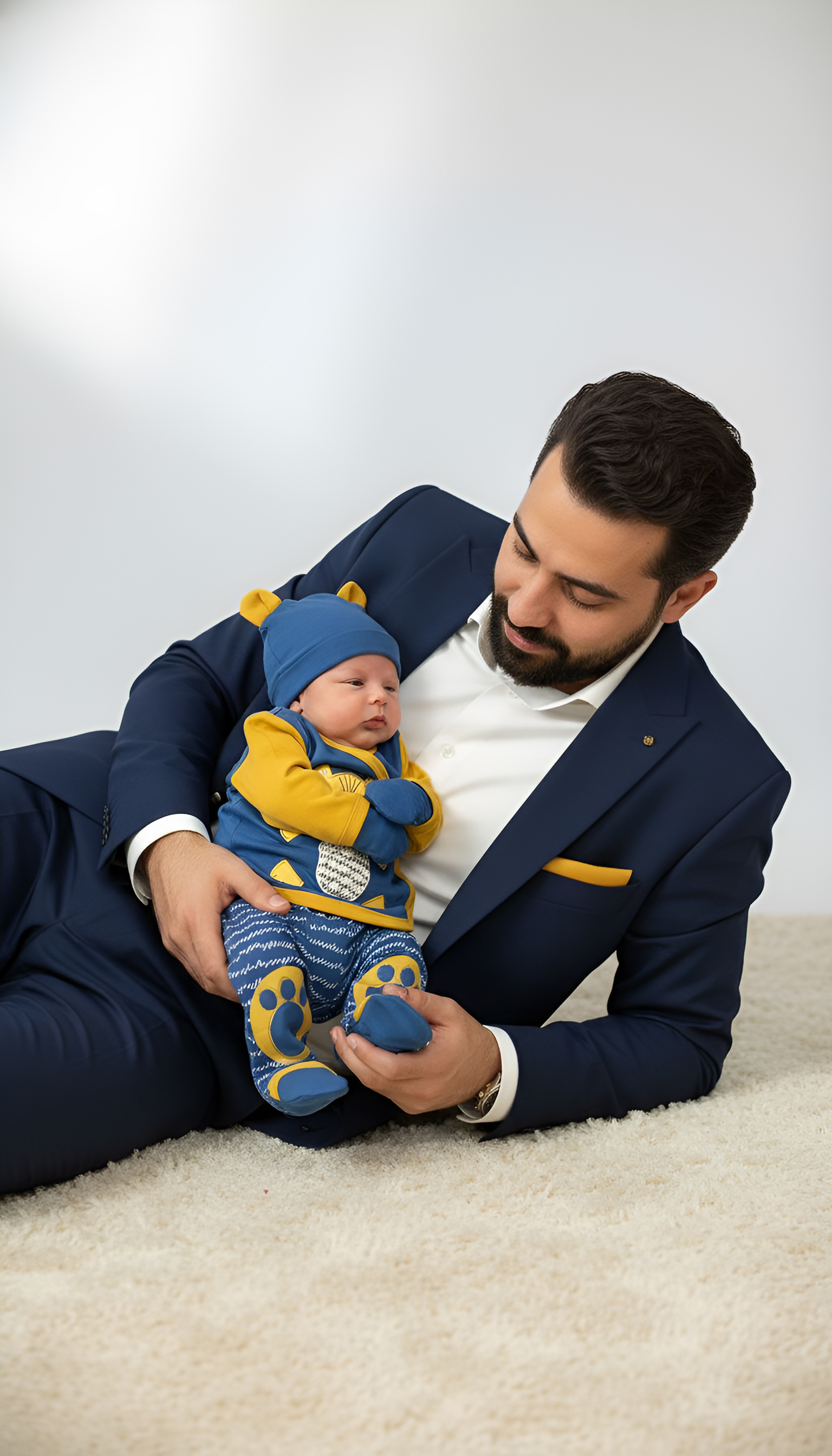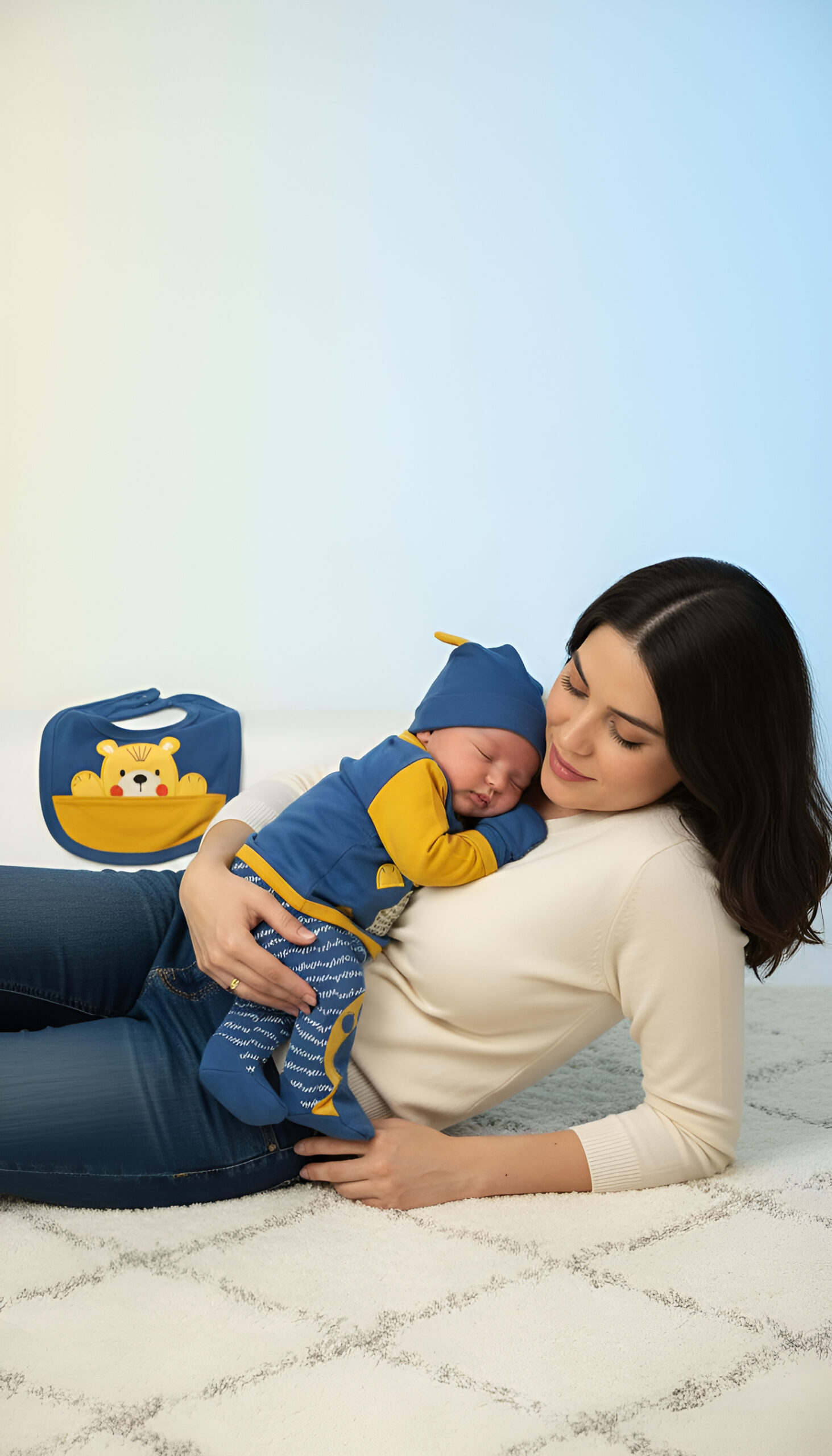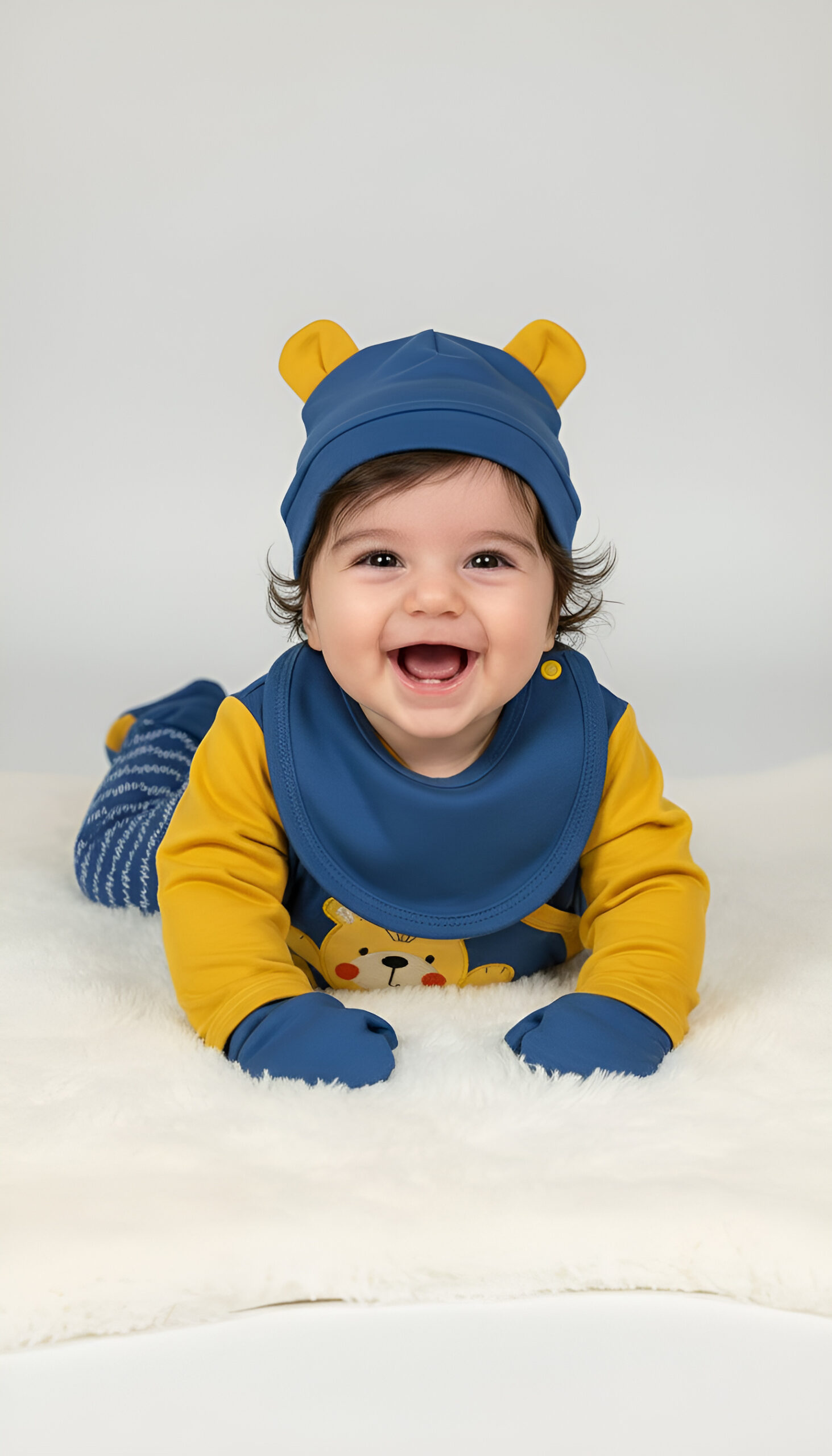 Ensemble bebe Ours 5 pièces bleu/moutarde