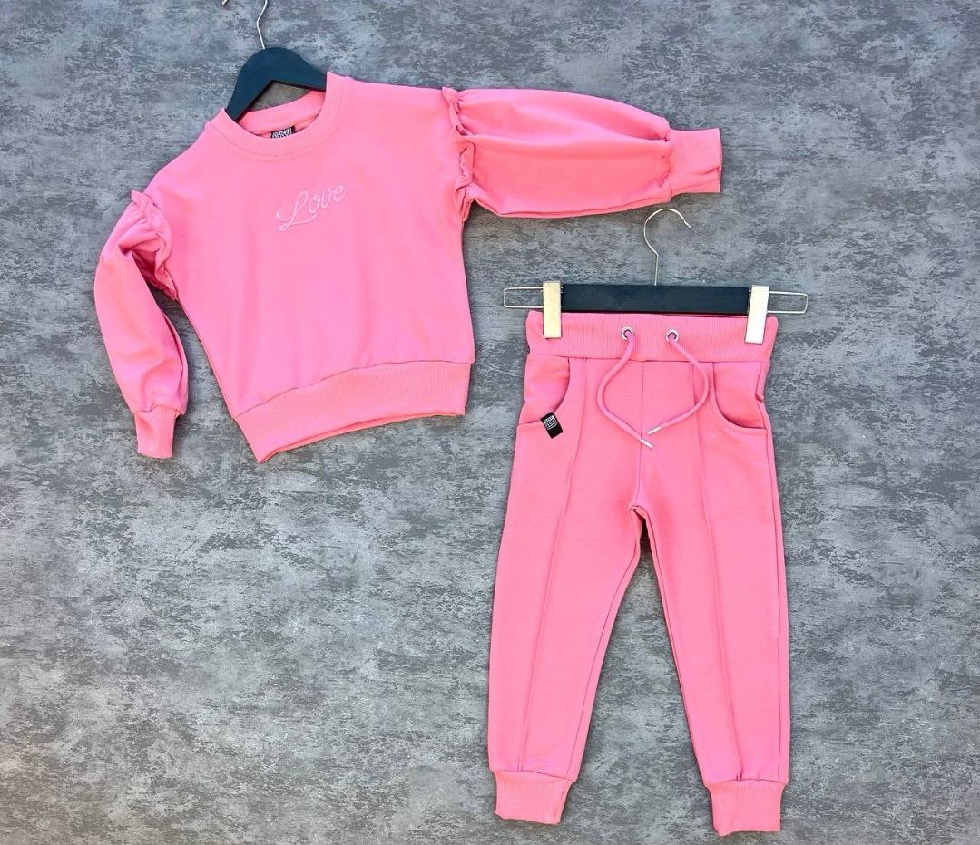Faites plaisir a votre fille par ce sublime ensemble “love” au style décontracté, moderne qui se compose de deux (02) pièces, pull et pantalon, Doux et confortable… votre princesse va l’adorer.