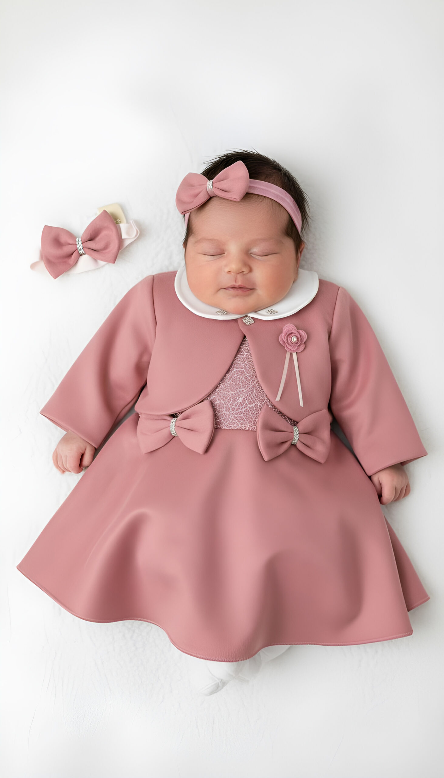 Travaillé avec un magnifique tissu au couleurs éclatantes, succombez pour cet ensemble robette coupe décontractée avec son gilet munie d’une fleur sur le côté et un body blanc et un serre tête en nœud de papillon pour le plaisir et la beauté de votre petite princesse.