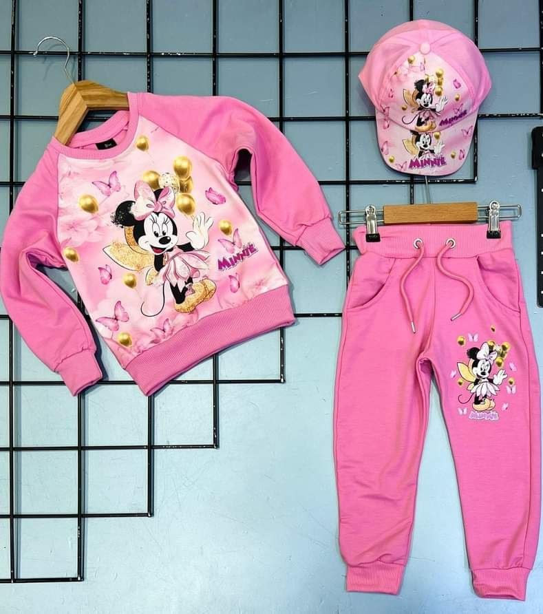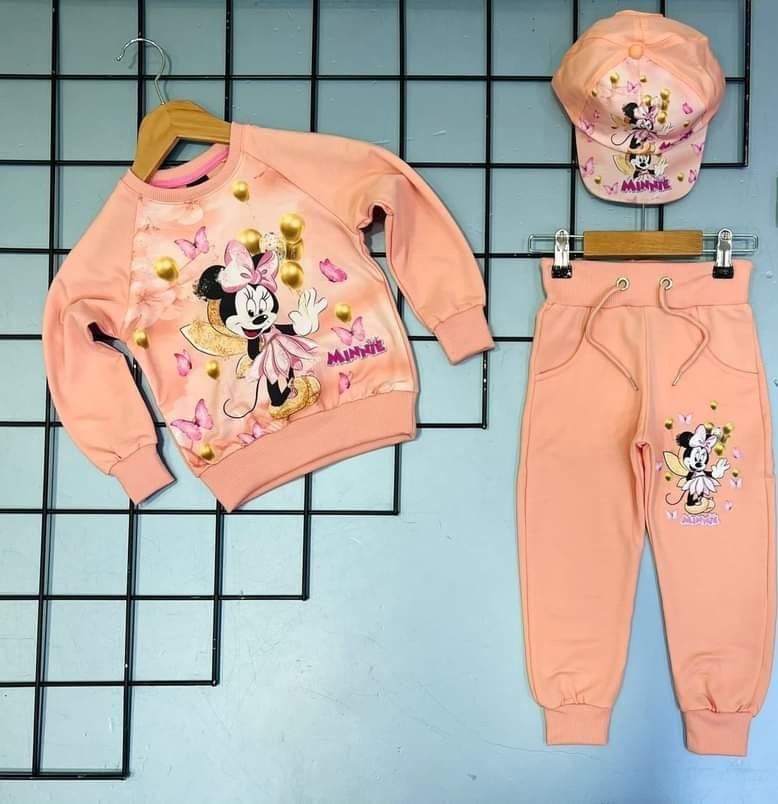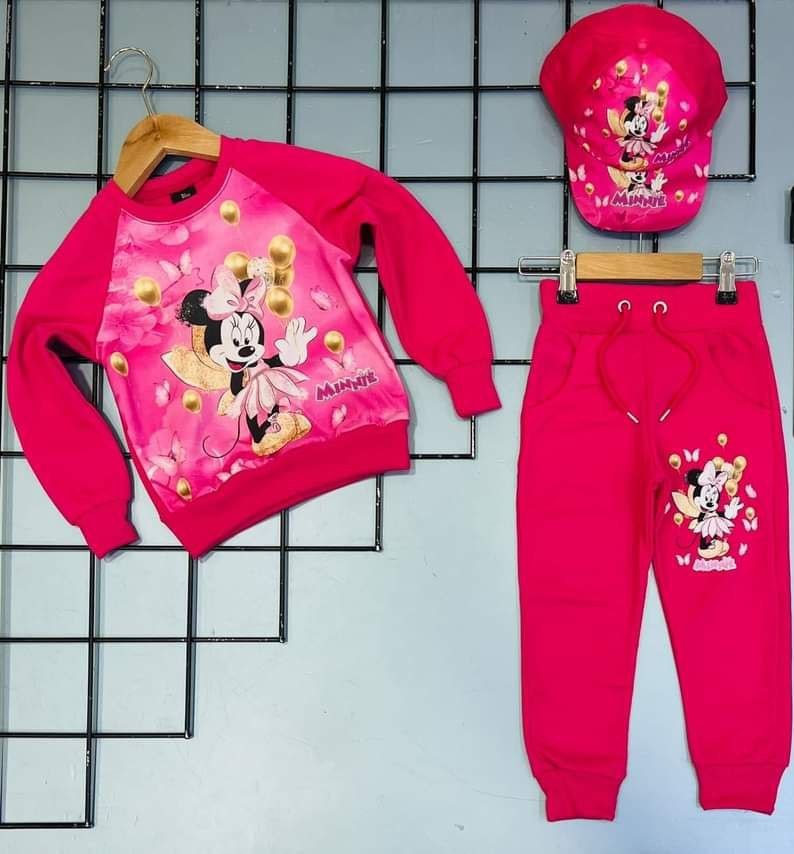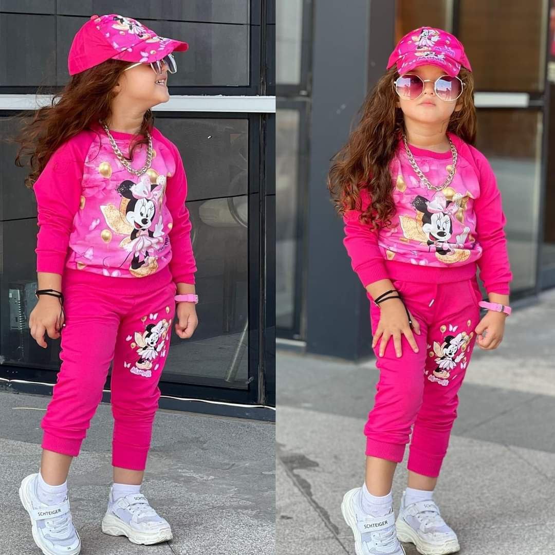 Un sublime survêtement Mickey mouse au découpe décontracté pour votre fille, Cet ensemble moderne se compose de trois (03) pièces, t-shirt et pantalon avec casquette. Doux et confortable, il présente un large dessin mickey mouse qui figure sur la face pour créer un style emblématique. Ne ratez pas !